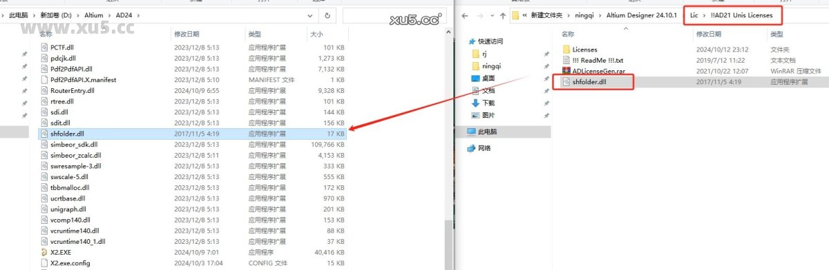13.打开安装包【补丁】文件夹,选择【shfolder.dll】破解文件复制到刚才打开的软件【安装目录】位置下