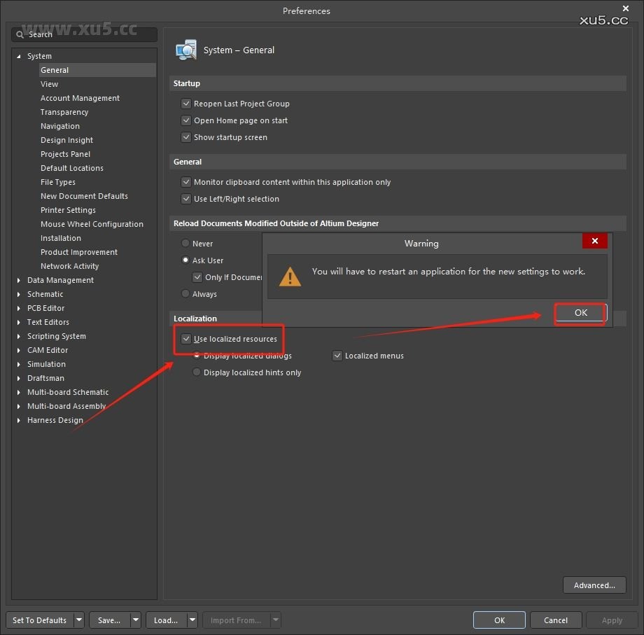 20. 勾选【Use localized resources】,弹出对话框,点击 OK