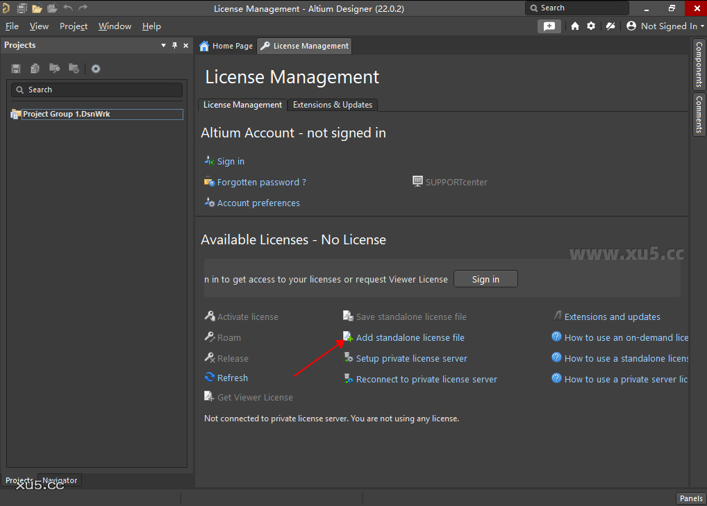 11 打开开始菜单,运行软件,点击界面中的【Add standalone license file】