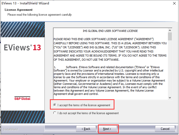 6.勾选 “I accept” 的选项,然后点击 Next。