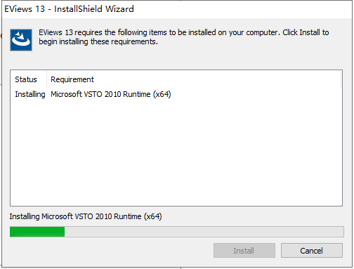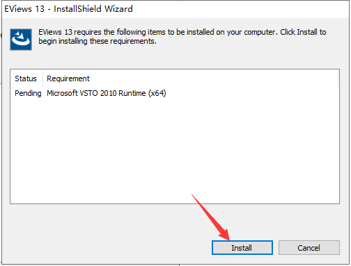3.EViews 13 要求下列项目安装在您的计算机上。点击【Install】。