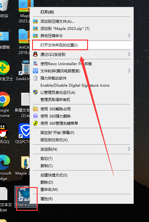 13.在电脑桌面找到软件,鼠标右键【Maple】打开文件所在位置也就是【安装目录】