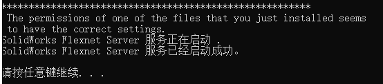 SolidWorks Flexnet Server 服务启动,等待启动成功,然后按随意键退出!如果启动失败的话,就先运行一下 server_remove.bat,再运行 server_install.bat,并且注意电脑名称不能用中文
