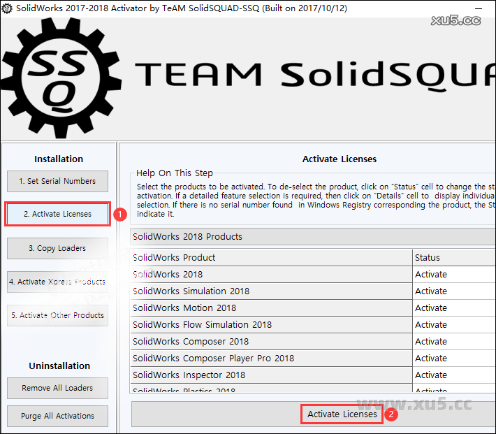 再点击左边的【Activate Licenses】,确认Status项中的值都是【Activate】,然后点击“Activate Licenses”,弹出窗口点击“Yes”;
