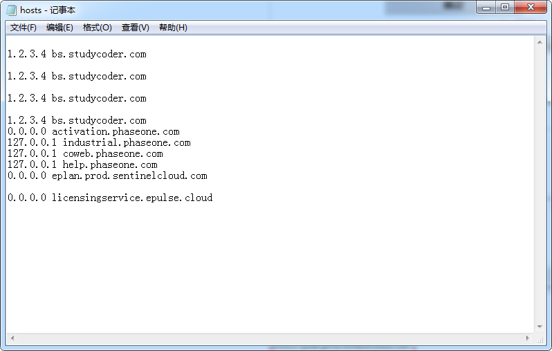 修改 hosts 文件,在下图所示位置插入: