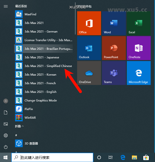 再开始菜单中找到3dmax 中文简体语言打开。后续直接从桌面打开就行