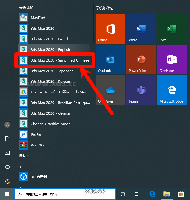 开始菜单中找到3dmax中文简体打开(只需要打开一次,后面再桌面打开就是中文了)