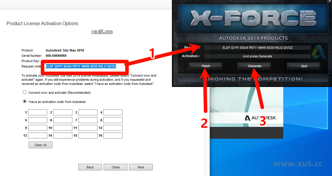 接下来跳转到这一步,复制申请号(request dode)到注册机,点击patch,再点击generate生成密钥