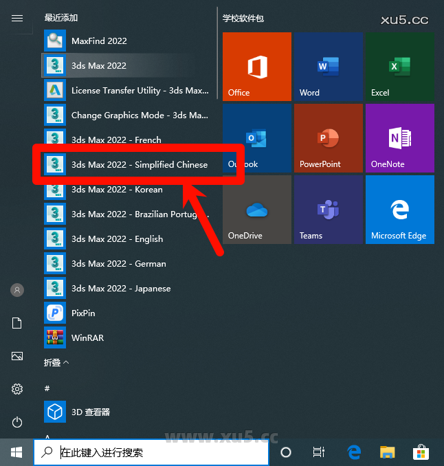 开始菜单中找到3dmax 简体中文语言点击开(只需要第一次打开,这样以后从桌面打开都是中文了)