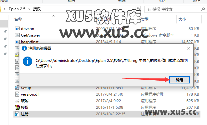 成功添加到注册表中,点击确定