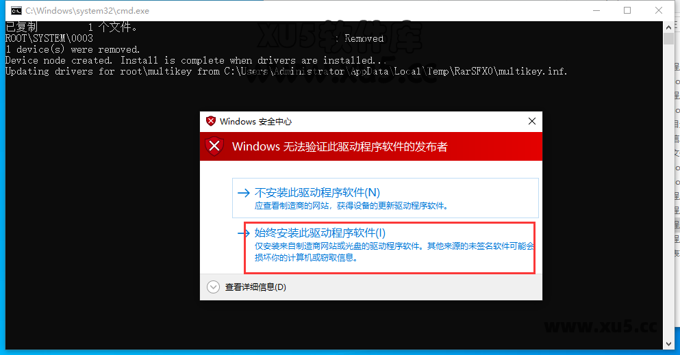 弹出对话框,点击始终安装驱动程序软件